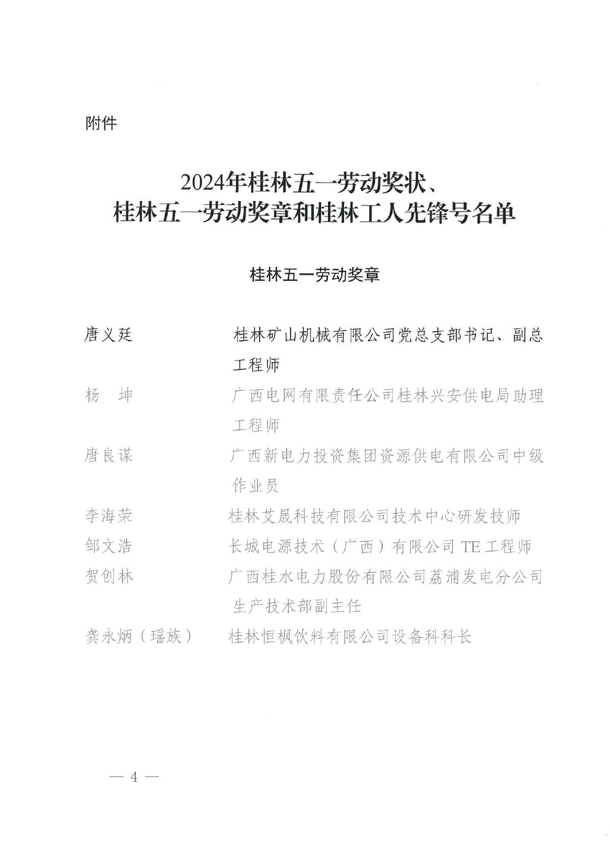 為表揚先進、樹立榜樣。近日,桂林市總工會發(fā)文關于表揚2024年桂林五一勞動獎和桂林工人先鋒號的通報,決定授予唐義廷等49名職工桂林五一勞動獎章。